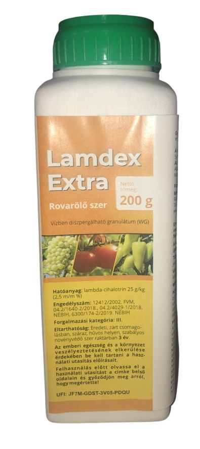 Kontakt rovarölő, széles hatásspektrumú, zöldség, gyümölcs, szőlő, és szántóföldi kultúrákban (Karate 2,5 WG megfelelője)
